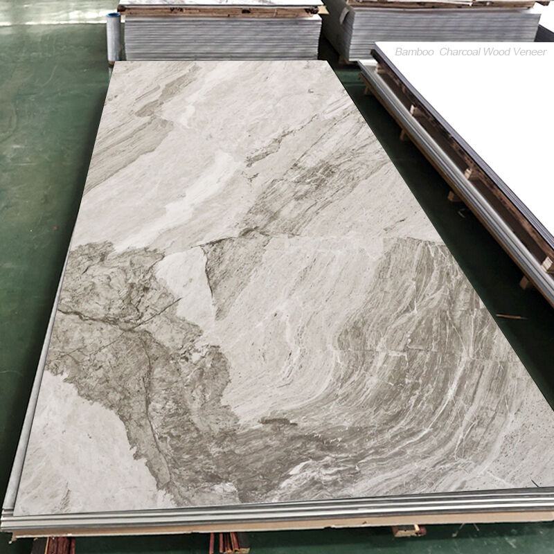 Contemporary Bamboo Charcoal Wood Veneer PVC Marble Wall Panel Fireproof Moisture-proof Board Golden-veined Wood Veneer For Indoor And Commercial Spaces